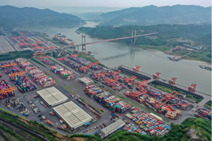 ▲?位于長江重慶段的果園港,是我國內河最大的水鐵公多式聯運樞紐港。從小碼頭到長江上游最大港口,果園港向著更快捷、更智慧、更綠色快速“奔跑”,逐漸蛻變成為成渝地區雙城經濟圈開放門戶和長江上游聯通世界的“中轉站”。攝影:新華社記者 唐奕